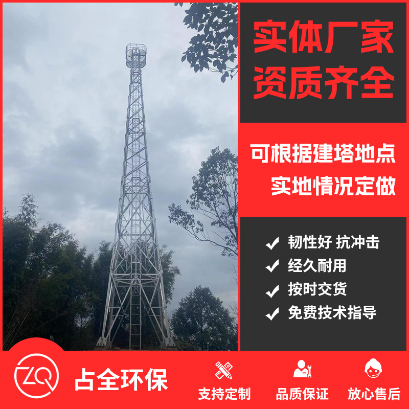 监控塔又名摄像塔/杆、瞭望塔,监控塔是在铁塔的基础上,经专业人员潜心研究,开发出来的集通讯、监控、照明功能于一体的塔型高耸钢结构监控设备!结构合理,造型美观,经久耐用,产品防腐处理热镀锌,防腐时间长。铝合金监视塔无须外表维护,安全使用长达 30年,是理想的登高望远设备。简介:1、均按国标〈GBj135-90〉等技术指标设计、生产。设计抗风力12级(30米/秒)以上,安全系数4-5倍,并具有结构科学合理、工艺精良、造型美观、安全耐用、防腐时间长等优点。安全使用30年以上。2、监控塔性能具备:架高通讯天线高度,增加通讯服务半经。装饰办公大楼及楼房的防雷接地等功效。3、铁塔材料构成为角钢、圆钢、钢管...